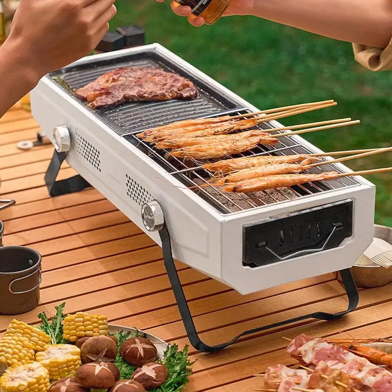 Avec sa grande capacité et sa conception polyvalente, ce barbecue est idéal pour cuisiner une variété de plats, des grillades classiques aux accompagnements plus élaborés. Son système à charbon garantit une cuisson uniforme et savoureuse, faisant de chaque repas un moment de plaisir. Que vous soyez au camping ou dans votre jardin, ce barbecue est un ajout précieux à votre arsenal de cuisine camping.
